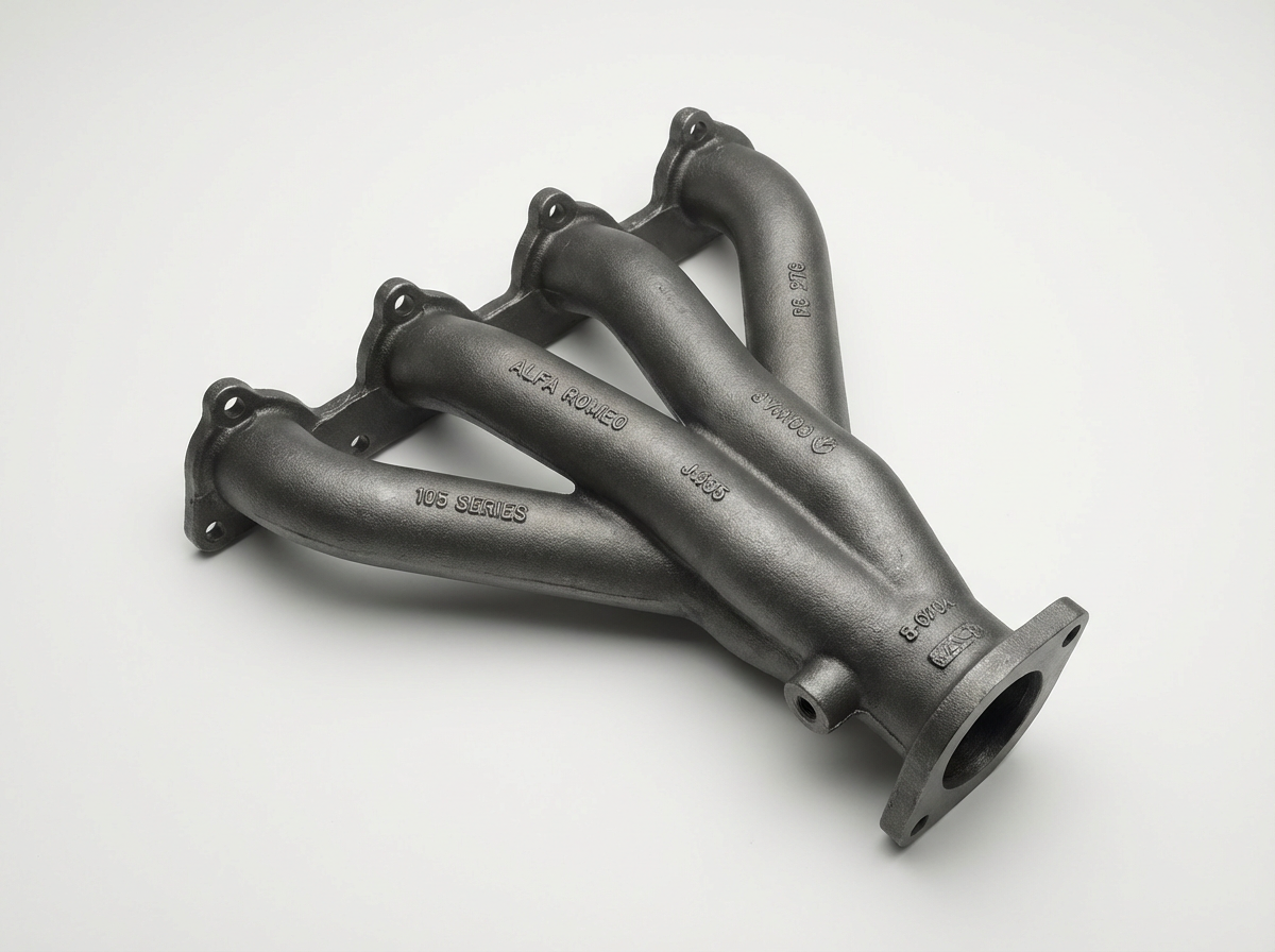Exhaust manifold for Alfa Romeo 105 Series models (e.g., Giulia, GTV). Ideal for restoration or replacement on classic Alfa projects. Used condition with normal wear; may require cleaning or minor repairs before installation.