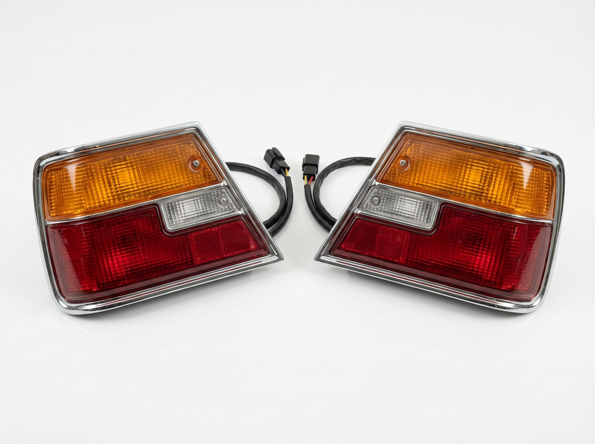 Matching pair of original tail lights for Ford Cortina Mk3 GT. Complete assemblies with lenses, housings, and wiring pigtails. Good condition with minor surface wear.